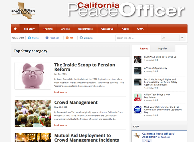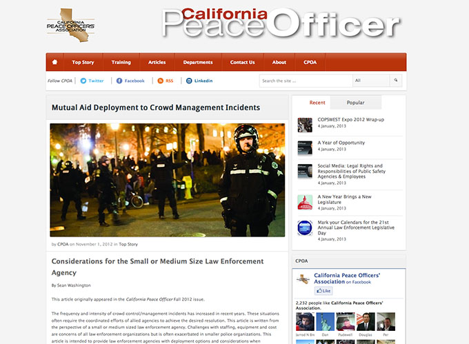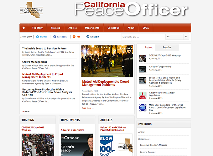 California Peace Officers' Association made the decision to convert their print magazine that Lori Mattas had been designing since early 2010 into an online publication to save on printing and mailing costs and to provide better access to their valuable article archives to their members.
